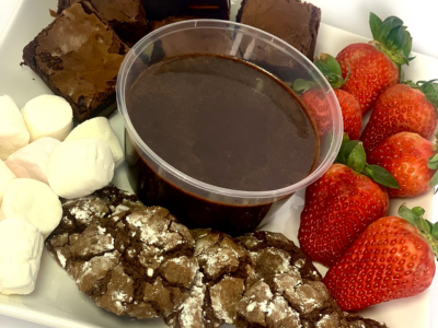 Indulge in the ultimate sweet experience with this decadent chocolate dipping box, perfectly curated for chocolate lovers. Each box includes fudgy triple chocolate brownies, juicy fresh strawberries, soft chocolate crinkle cookies, and fluffy marshmallows—ideal for dipping and sharing. Paired with a rich, velvety chocolate sauce, it’s a deliciously fun treat that’s perfect for any occasion.